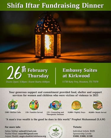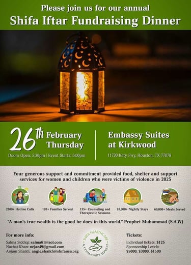 Shifa Community and Healthcare Services is having its annual Iftar (dinner)